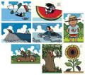 PC151 シロクマ・海 PC152 ペンギン・スイカ PC153 クジラとカブトムシ PC154 ウミガメと男の子 PC155 なつおくん PC156 セミと男の子 PC158 ヒマワリ